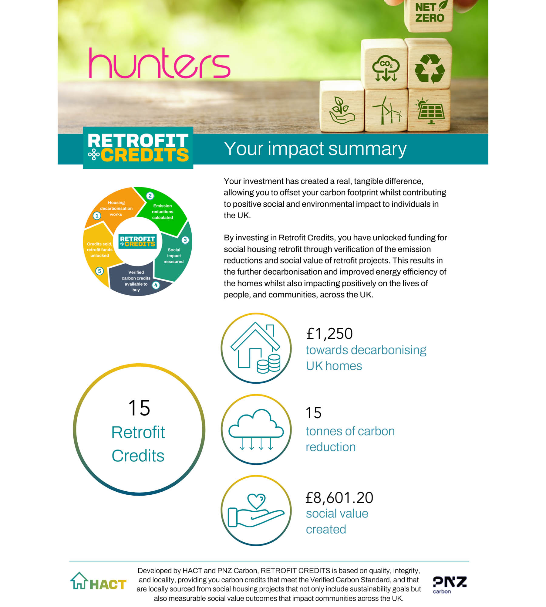 We’ve managed to reduce our carbon footprint by 80%. Off-setting isn’t our preferred choice, but we have invested in offsetting our residual carbon footprint through HACT Retrofit Credits (see image below), they decarbonise social housing, a sector we major on as a business. So rather than throw money at irrelevant offsetting, we are focused on supporting our communities.